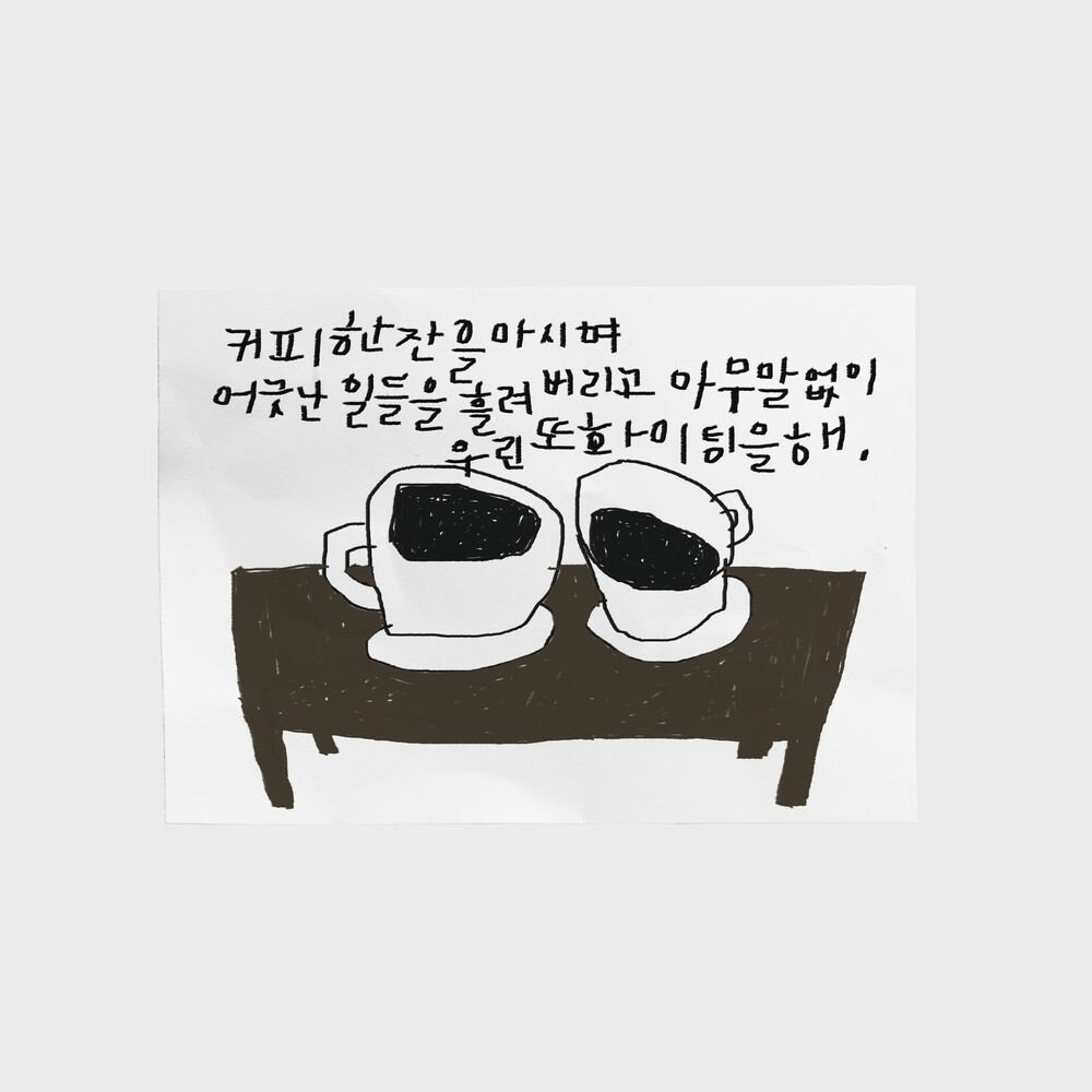 커피 한 잔으로 힘든 일들은 흘려보내고 다시 힘내자는, 소소하지만 확실한 회복의 순간을 담았습니다.